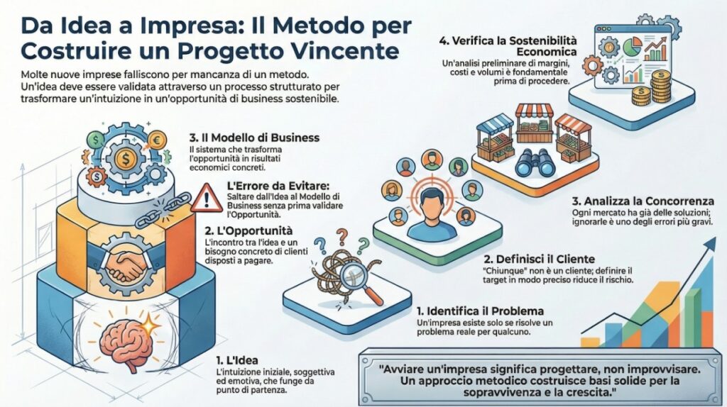 Un’idea imprenditoriale valida non nasce dall’entusiasmo, ma da un processo strutturato.