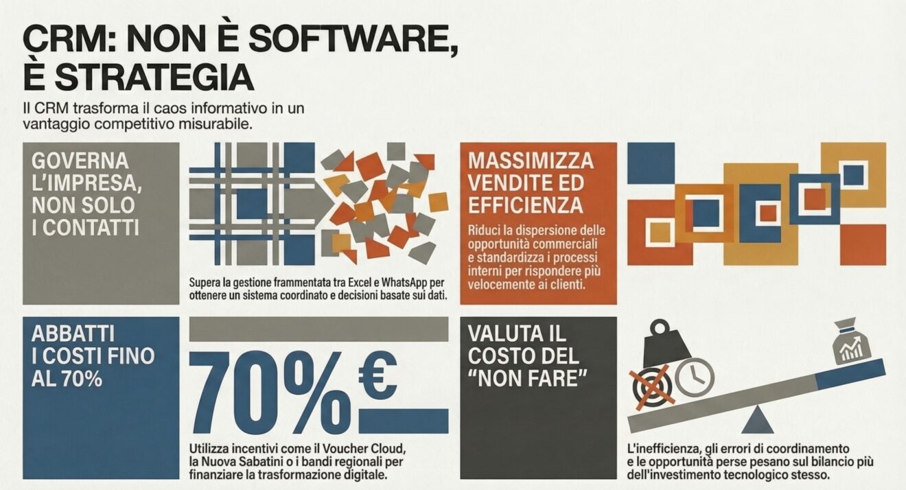 Per una PMI italiana, investire in un CRM o in una piattaforma aziendale integrata significa costruire più controllo, più continuità e più capacità competitiva.