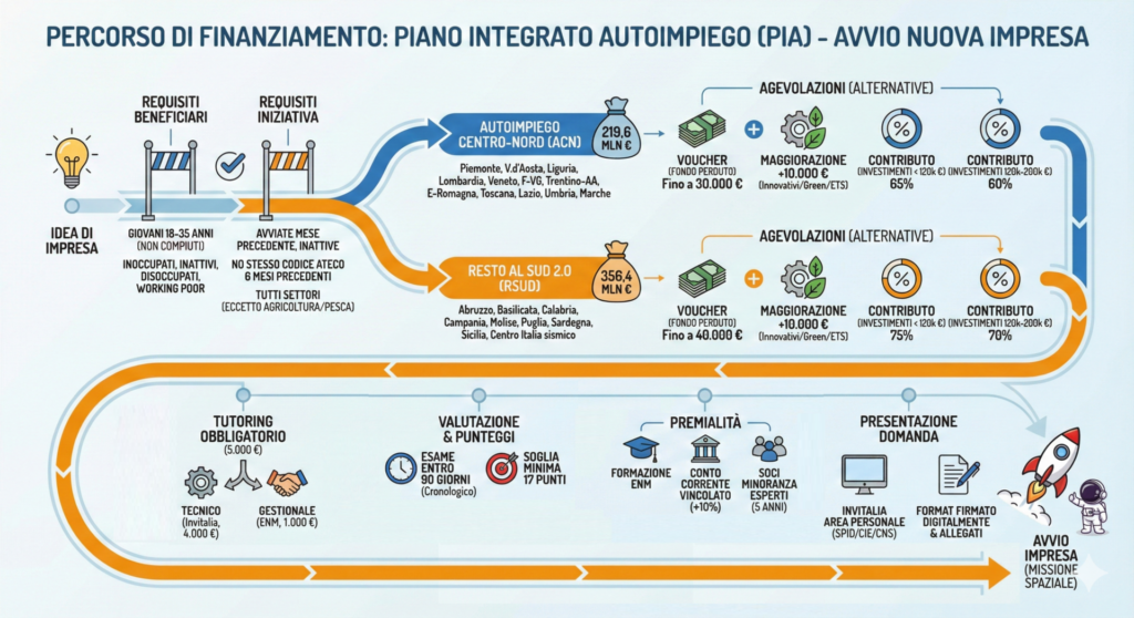 Il Piano Integrato Autoimpiego è una misura nazionale gestita da Invitalia, pensata per sostenere:
